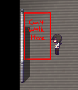 Also, the collision of the chalk board is off. You can only walk one tile alongside it.